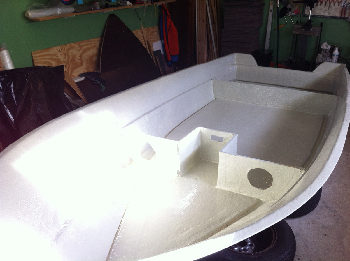 Och visst, jag förstår att jag borde endast ha målat stuvutrymmena och sedan satt dit allt och gjort all plastning klar INNAN topcoaten. Men jag ska ändå slipa ner denna, så passade på att måla hela båten :)