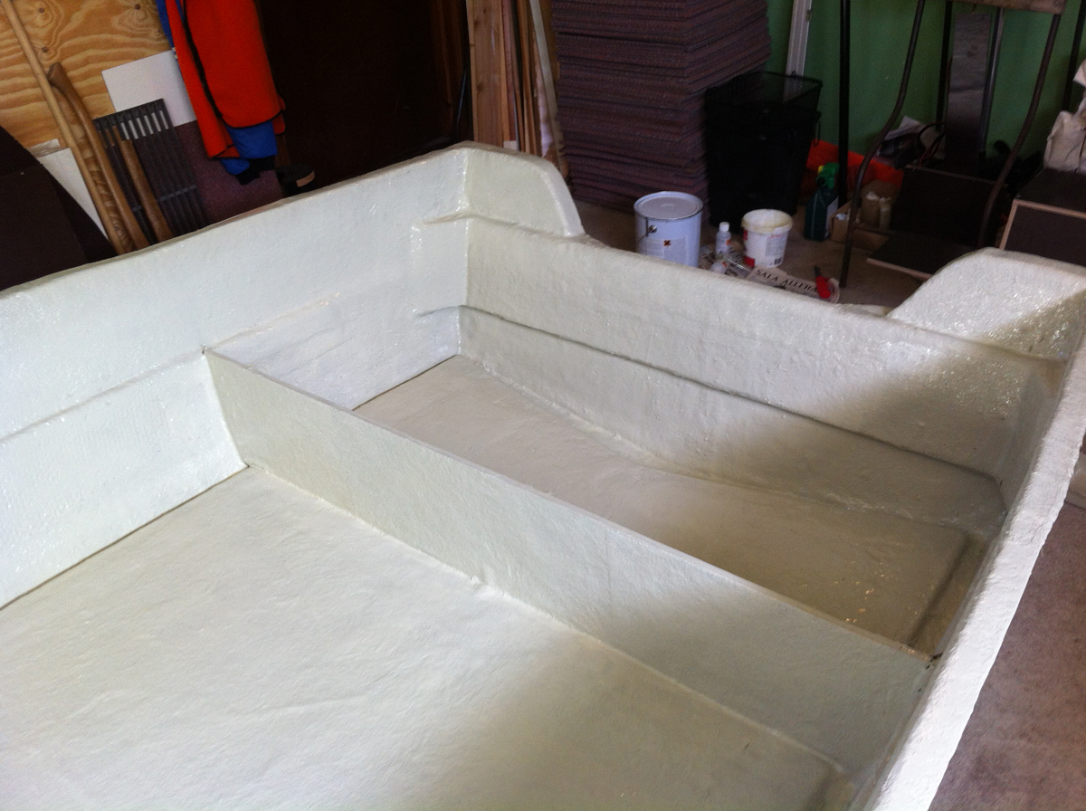 Och visst, jag förstår att jag borde endast ha målat stuvutrymmena och sedan satt dit allt och gjort all plastning klar INNAN topcoaten. Men jag ska ändå slipa ner denna, så passade på att måla hela båten ![]()
