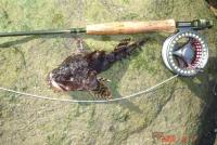 Med all sannolikhet var det en Rötsimpa En riktigt vacker fisk faktiskt. Ibland väldigt färggrann på buken, men det ser du först när du fått upp den Kul och spännande att fiska. Släng i en agnad krok framför munnen och vänta en stund. De tar agnet riktigt lugnt och försiktigt - spännande att se vad som händer